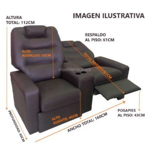SILLÓN POLTRONA FRIDA DOBLE RECLINABLE CON POSAVASOS CUERINA COLOR A ELECCIÓN