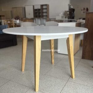MESA NORWAY REDONDA 158- 90CM TAPA BLANCA – MIEL