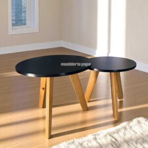 SET 2 MESAS LIVING REDONDAS NORDICAS NEGRA PATAS WENGUE