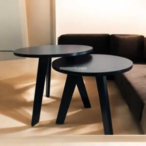 SET 2 MESAS LIVING REDONDAS NORDICAS NEGRA