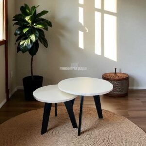 SET 2 MESAS LIVING REDONDAS NORDICAS BLANCA PATAS WENGUE