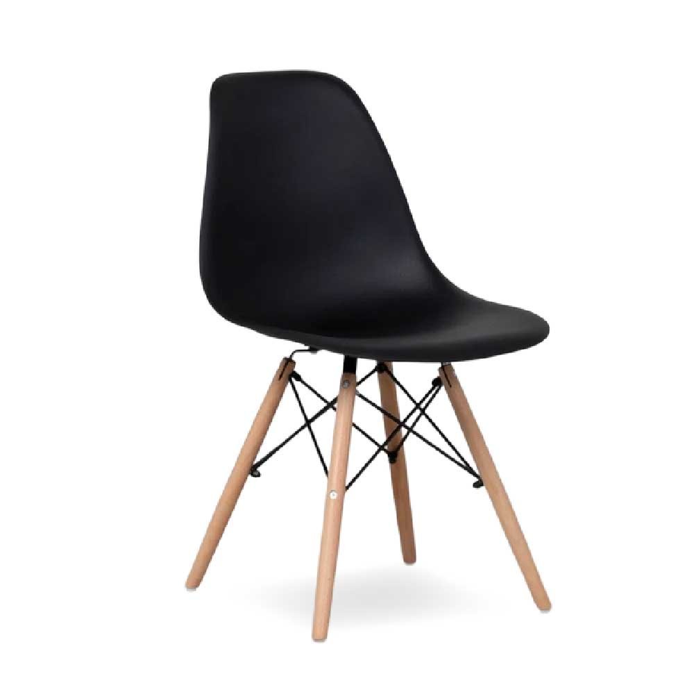 • Asiento de polipropileno semi rugoso y patas de madera maciza