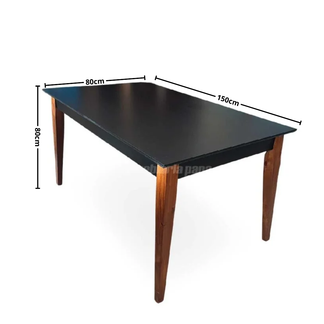 MESA COMEDOR PINO MEDITERRANEO 150X90CM 142 TAPA NEGRO PATAS CASTAÑO